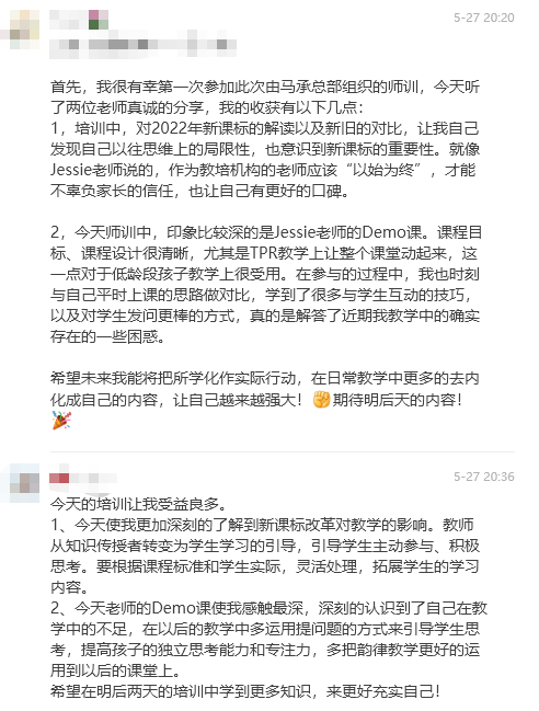 相信老师们定能将所学所悟带回课堂,将直呼式韵律教学法,大小三位教学法等代入课堂,为学生打造更优质、更高效的英语学习体验,让学生感受到学习英语简单生动有趣。也更加坚定了老师们投身英语教育事业的决心,期待下次再见!